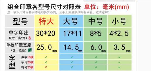 有一部分客(kè)戶(hù)需(xū)要的(de)不僅僅是logo,而是需(xū)要順序(xù)印刷的編碼,例如“shuanglong-001”一直(zhí)到(dào)“shuanglong-1000”這樣的話(huà)使用(yòng)絲網印刷就明顯的不行了,我們不可能去做一千個絲網版。這種情況下我們一般使(shǐ)用活字(zì)碼人工進行印刷,費事費力,並且印刷(shuā)出(chū)來不是特別的規範美觀。如果同行有更好的方法請不(bú)靈賜教,我的QQ:764234081。下圖就是(shì)我們常用的活字碼(mǎ)的尺寸表。