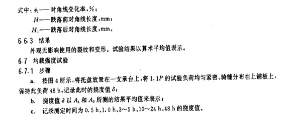 6.3.3 卸載後,外觀應(yīng)無影響使用的裂紋和(hé)變形。試驗結果以算(suàn)術平均值表示。